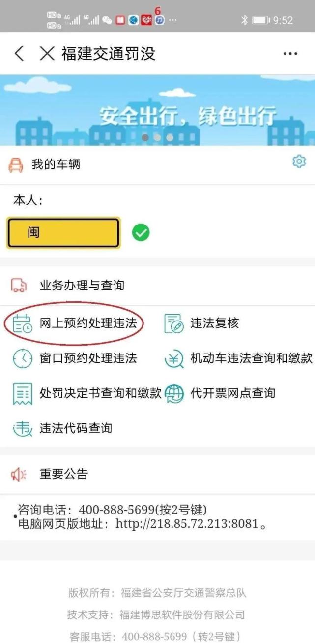 6.點擊“網(wǎng)上預(yù)約處理違法”