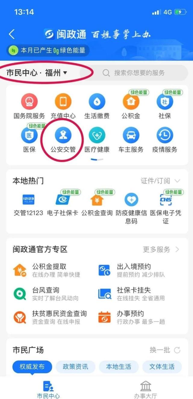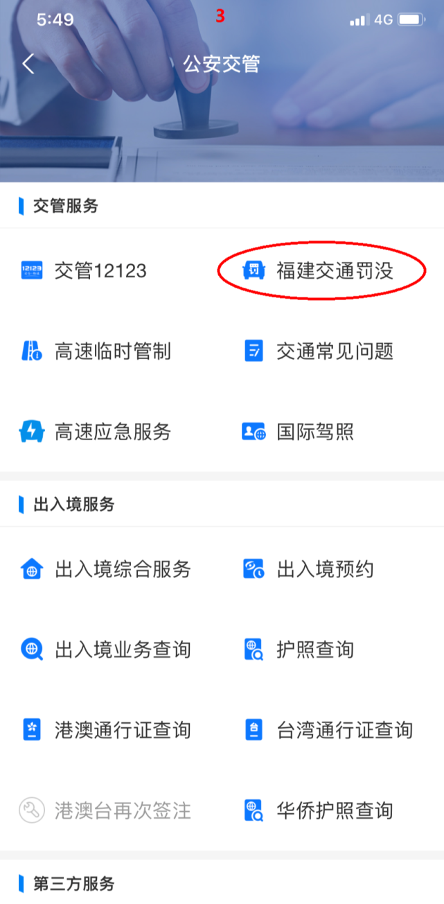3.點擊“公安交管”(請定位“福州”)