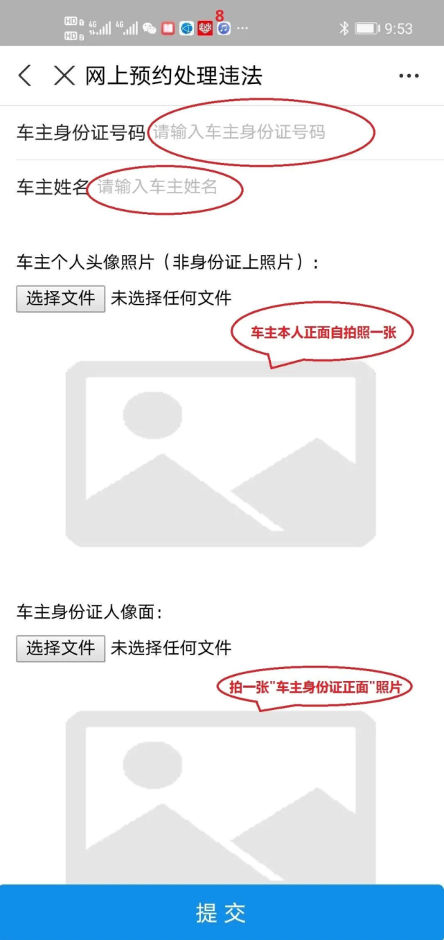 8.上傳車主正面照片及車主身份證頭像面照片