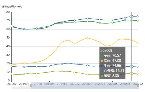 9月份,食品價格同比上漲7.9%,漲幅環(huán)比回落3.3個百分點,影響CPI上漲約1.69個百分點。其中,豬肉價格同比上漲25.5%,漲幅比上月大幅回落27.1個百分點。