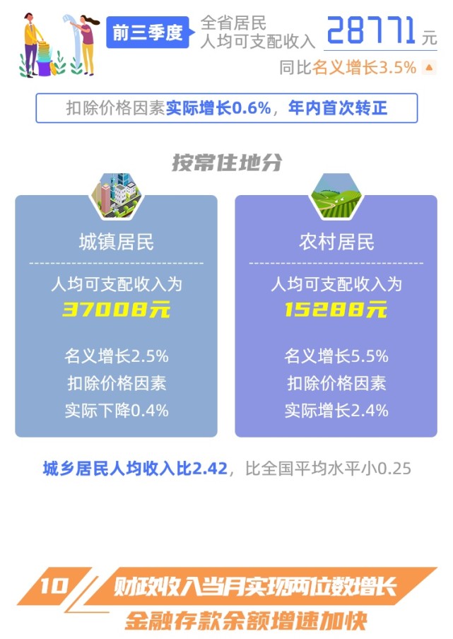臺(tái)海網(wǎng)10月23日訊 據(jù)福建日?qǐng)?bào)報(bào)道  國(guó)家統(tǒng)計(jì)局福建調(diào)查總隊(duì)發(fā)布的數(shù)據(jù)顯示,據(jù)住戶抽樣調(diào)查,前三季度福建省居民人均可支配收入28771元,比上年同期增長(zhǎng)3.5%。 前三季度,我省城鎮(zhèn)居民人均可支配收入37008元,同比增長(zhǎng)2.5%。其中,工資性收入為22637元,同比增長(zhǎng)4.7%;財(cái)產(chǎn)凈收入5298元,同比增長(zhǎng)14.7%。 前三季度,我省農(nóng)村居民人均可支配收入15288元,同比增長(zhǎng)...