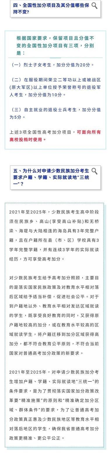 經(jīng)省委、省政府同意,日前,省教育廳、省委統(tǒng)戰(zhàn)部、省民宗廳、省公安廳和省臺港澳辦等5部門聯(lián)合下發(fā)了《福建省關(guān)于進(jìn)一步深化高考加分改革工作實施方案》(以下簡稱《方案》)。為了讓考生、家長及社會各界人士更好地了解、理解高考加分政策改革調(diào)整,具體解讀如下。