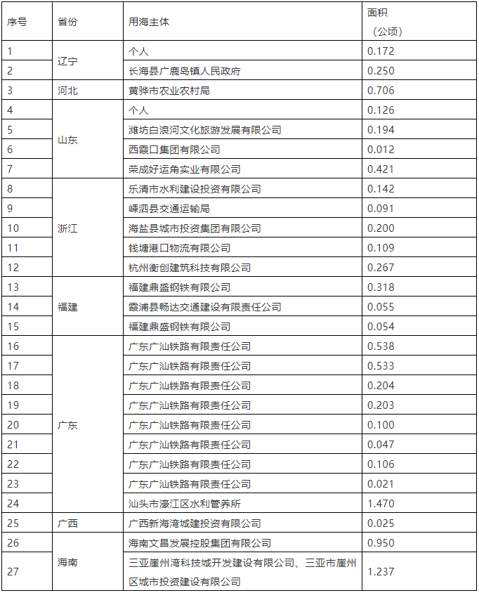 1處位于莆田市秀嶼區(qū),涉及海域面積約0.23公頃,涉嫌違法填海主體為個人。