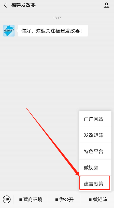 1.微信公眾號:關(guān)注“福建發(fā)改委”公眾號,在“建言獻策”專題中提交意見建議。
