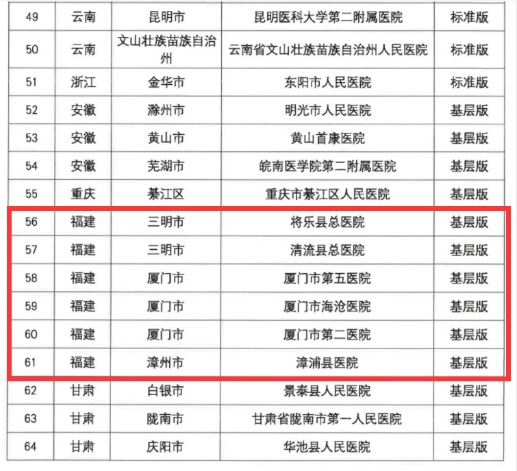 首次通過(guò)認(rèn)證胸痛中心單位名單(福建)