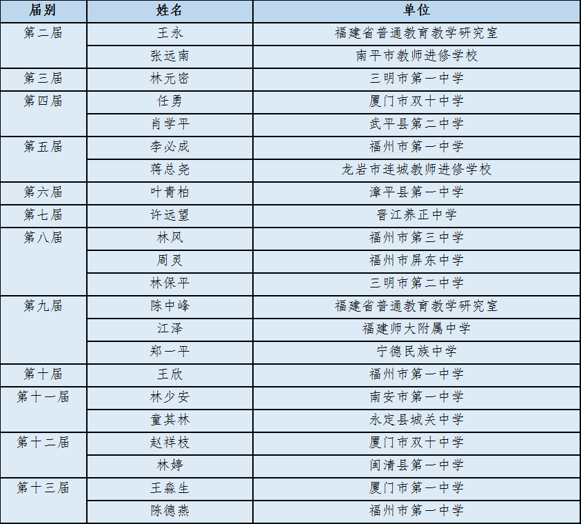 歷屆“蘇步青數(shù)學(xué)教育獎(jiǎng)”福建省獲獎(jiǎng)教師名單