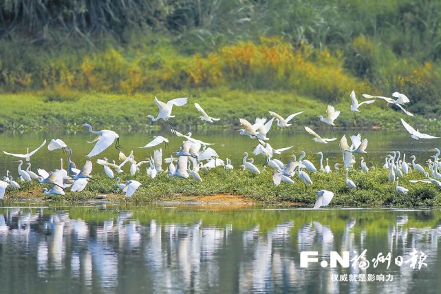 南平市延平區(qū)爐下鎮(zhèn)(閩江流域)白鷺翔集。閩北日?qǐng)?bào) 張章銀 攝