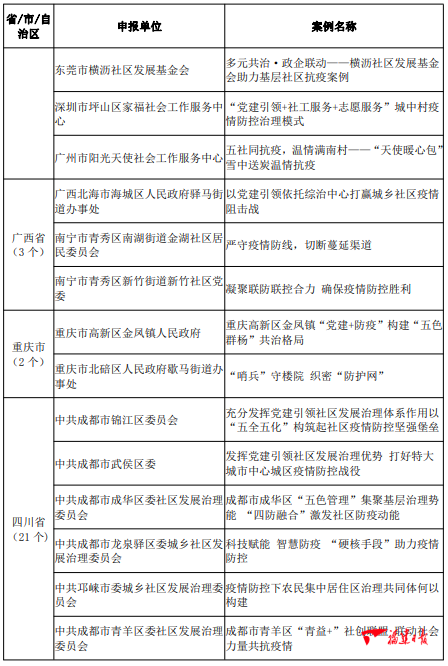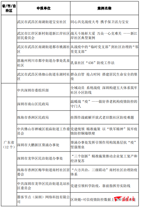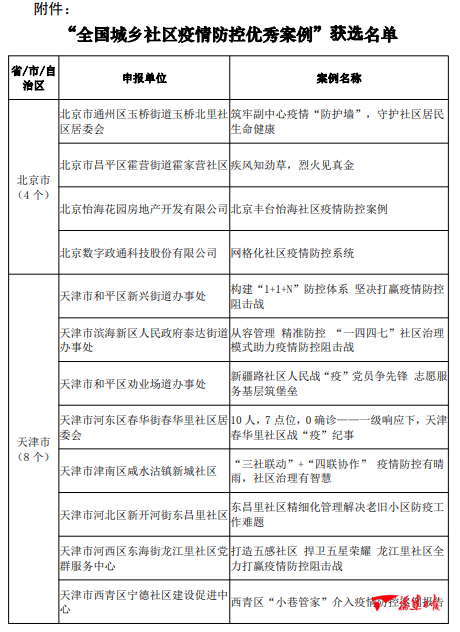 附:“全國城鄉(xiāng)社區(qū)疫情防控喲秀案例”獲選名單