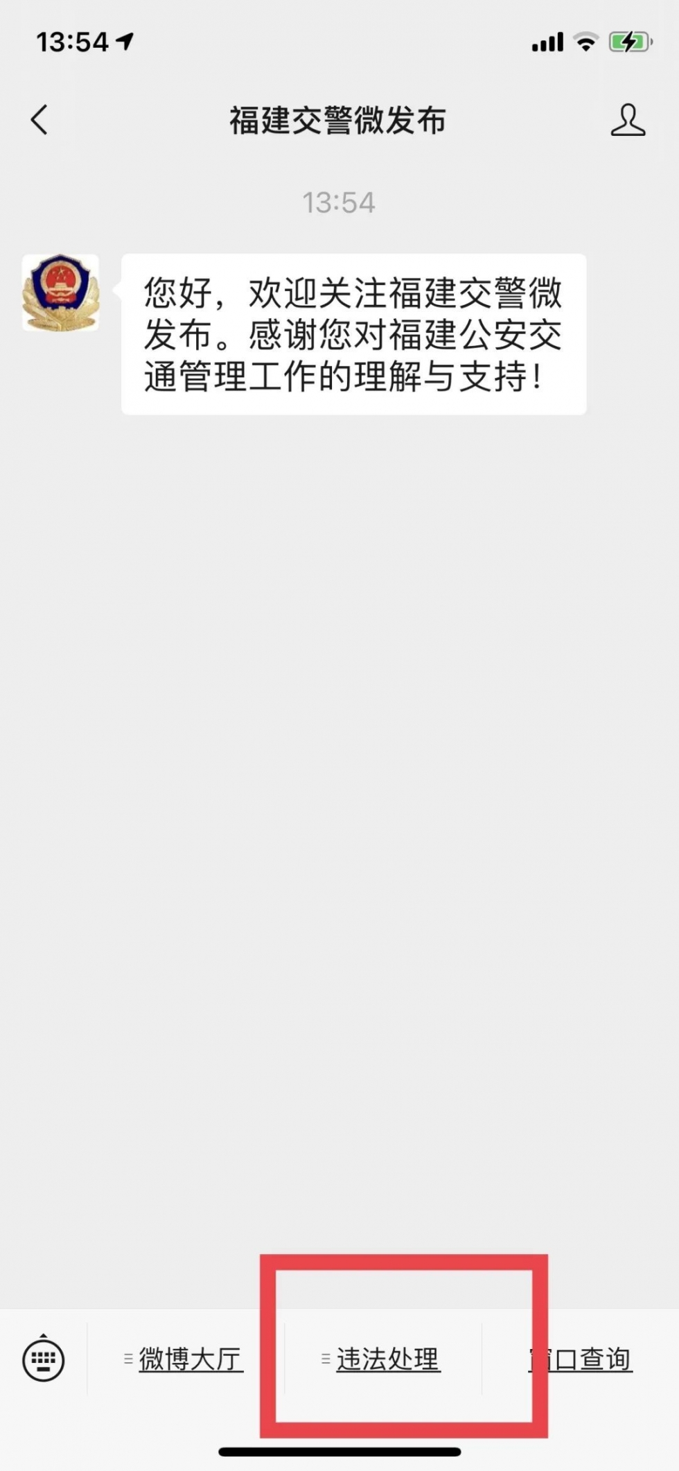 第一步:關(guān)注“福建交警微發(fā)布”公眾號(hào)