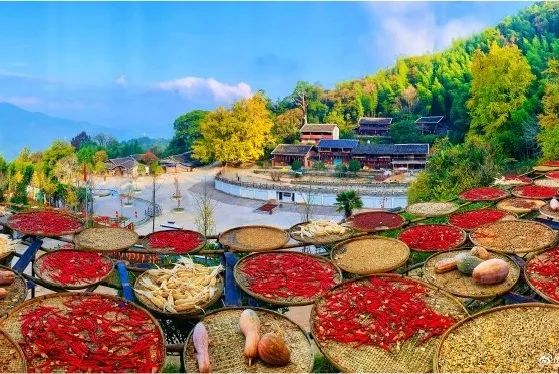 純粹的金色落葉散落在村前村后,無數(shù)條金色長廊通往了古樸的村莊。