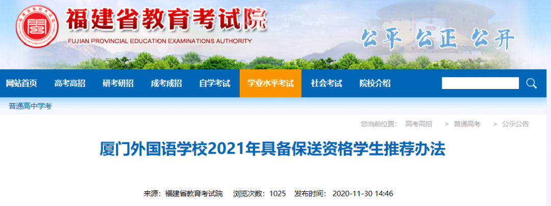 此外,福建省教育考試院也公布了廈門外國語學校2021年具備保送資格學生推薦辦法。據(jù)了解,2021屆廈門外國語學校將會有105名高三考生保送清北等名校。