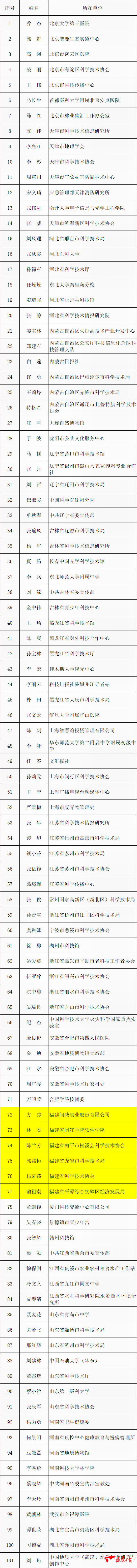 全國(guó)科普工作先進(jìn)工作者(福建上榜)