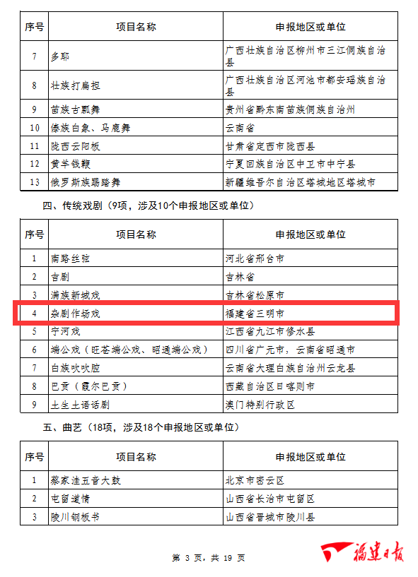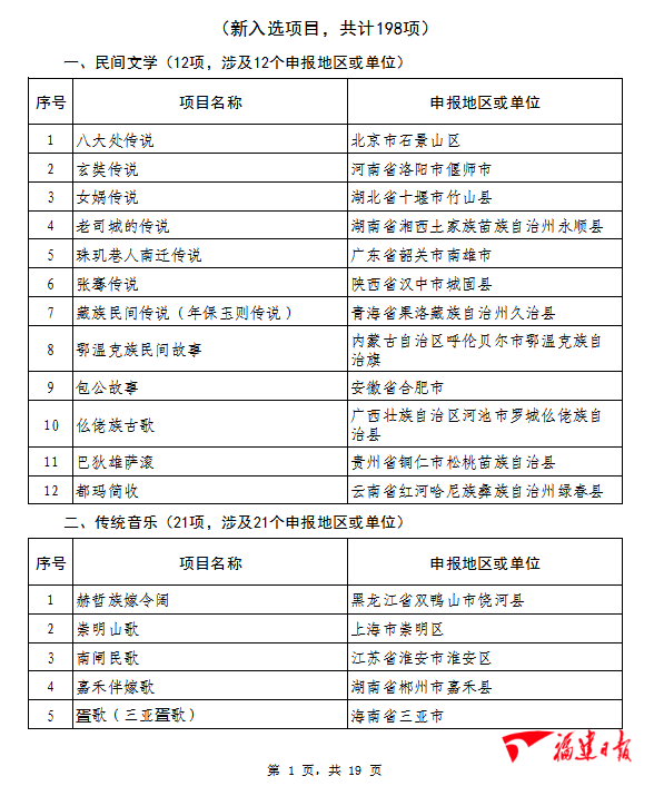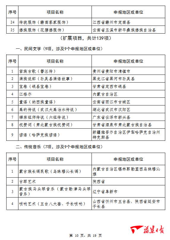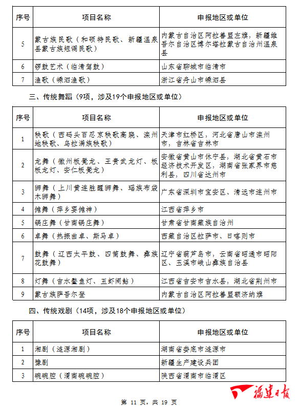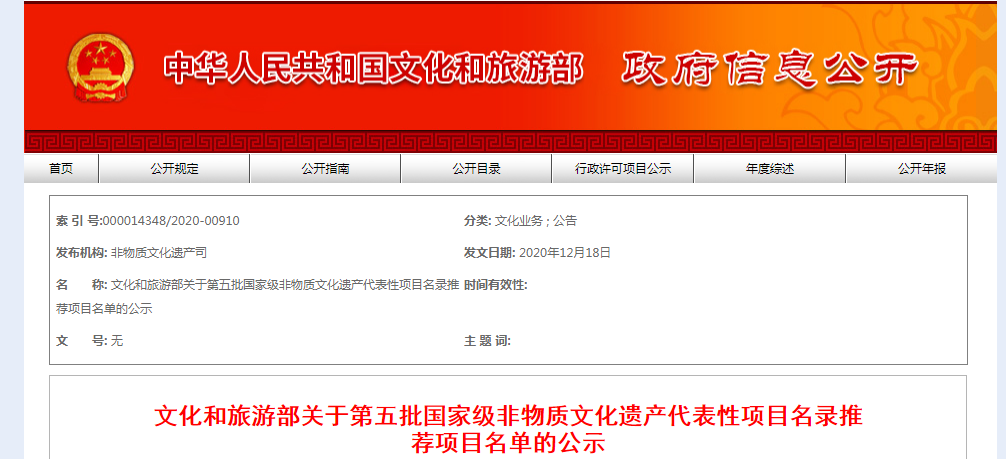 文化和旅游部關(guān)于第五批國家級非物質(zhì)文化遺產(chǎn)代表性項目名錄推薦項目名單的公示