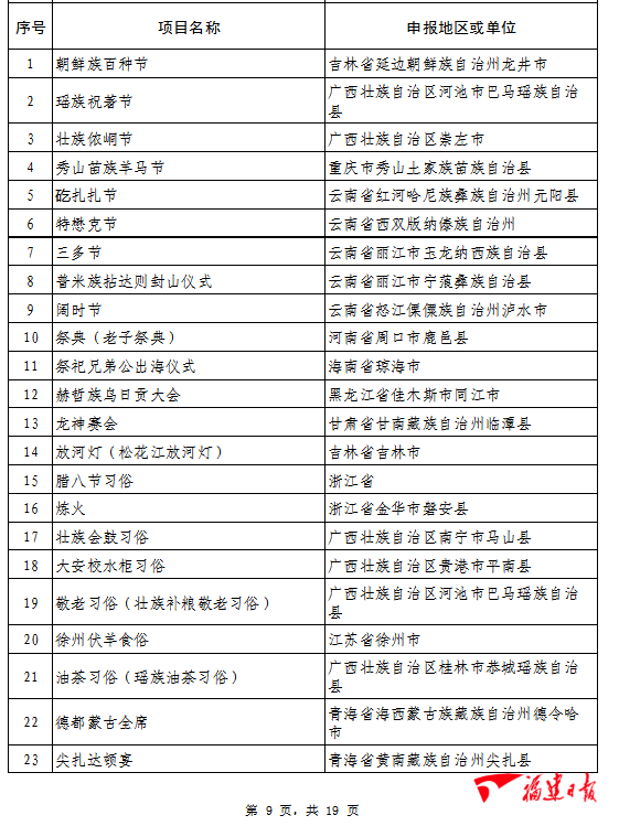 第五批國家級非物質(zhì)文化遺產(chǎn)代表性項目名錄推薦項目名單