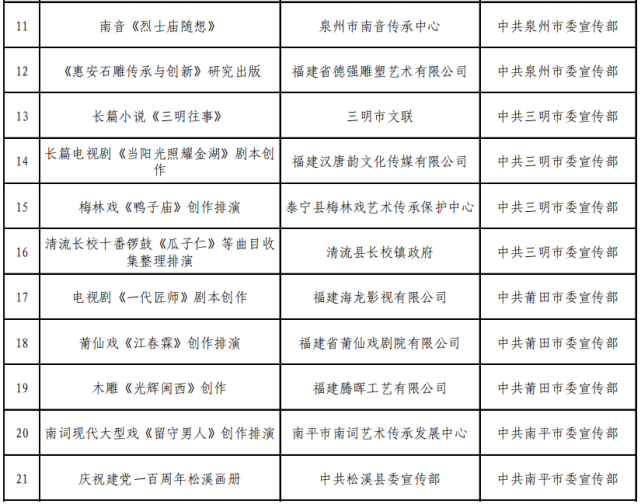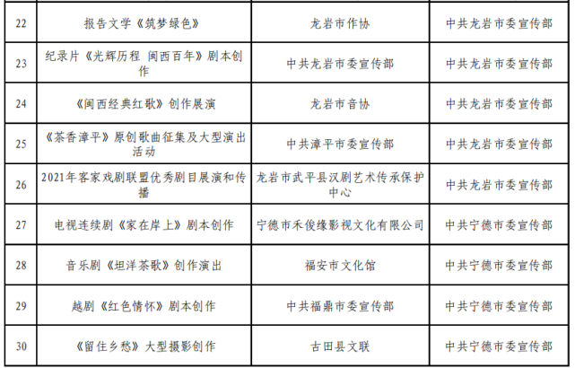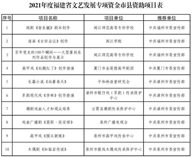 2021年度福建省文藝發(fā)展專項資金市縣資助項目
