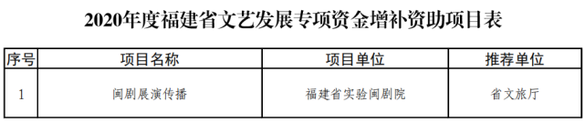 根據(jù)我省專項資金管理辦法,現(xiàn)將擬資助的30項2021年度福建省文藝發(fā)展專項資金市縣資助項目和1項2020年度文藝發(fā)展專項資金增補項目予以公示。公示時間從2020年12月21日開始,公示期為五個工作日。聯(lián)系電話:0591-87835607。