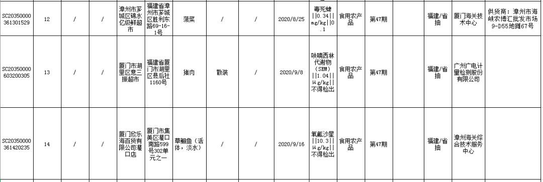 ?莆田市荔城區(qū)大兆生活超市銷售的菠菜(購進日期為2020年9月24日),毒死蜱不合格,檢驗機構(gòu)為廈門海關(guān)技術(shù)中心。