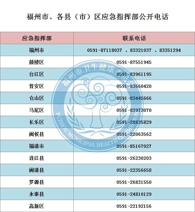 福州市、各縣(市)區(qū)應(yīng)急指揮部公開電話
