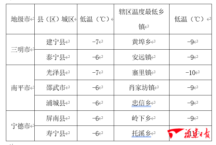 通知指出,據(jù)省氣象部門預(yù)測,受強(qiáng)冷空氣影響,1月7日起各地氣溫明顯下降,1月7~13日將出現(xiàn)持續(xù)低溫天氣過程,1月7日南平、三明、寧德三市和龍巖西北部的部分有小雪或雨夾雪。最低氣溫將出現(xiàn)在1月9日,南平、三明、龍巖、寧德大部、福州西部、泉州北部城區(qū)最低氣溫將降至0℃以下(有結(jié)冰),其中南平大部、三明西部、寧德西部和龍巖西北部城區(qū)將達(dá)到-7~-3℃;中南部臨??h市城區(qū)4~7℃,其余大部城區(qū)0~3℃。除中南部臨海縣市外,其余大部有霜或霜凍。最低氣溫的過程降溫幅度西部、北部地區(qū)可達(dá)9~12℃,其余大部7~9℃,內(nèi)陸地區(qū)的部分縣市將出現(xiàn)寒潮天氣。省氣象臺發(fā)布低溫二級預(yù)警,省氣象局啟動低溫三級應(yīng)急響應(yīng)。