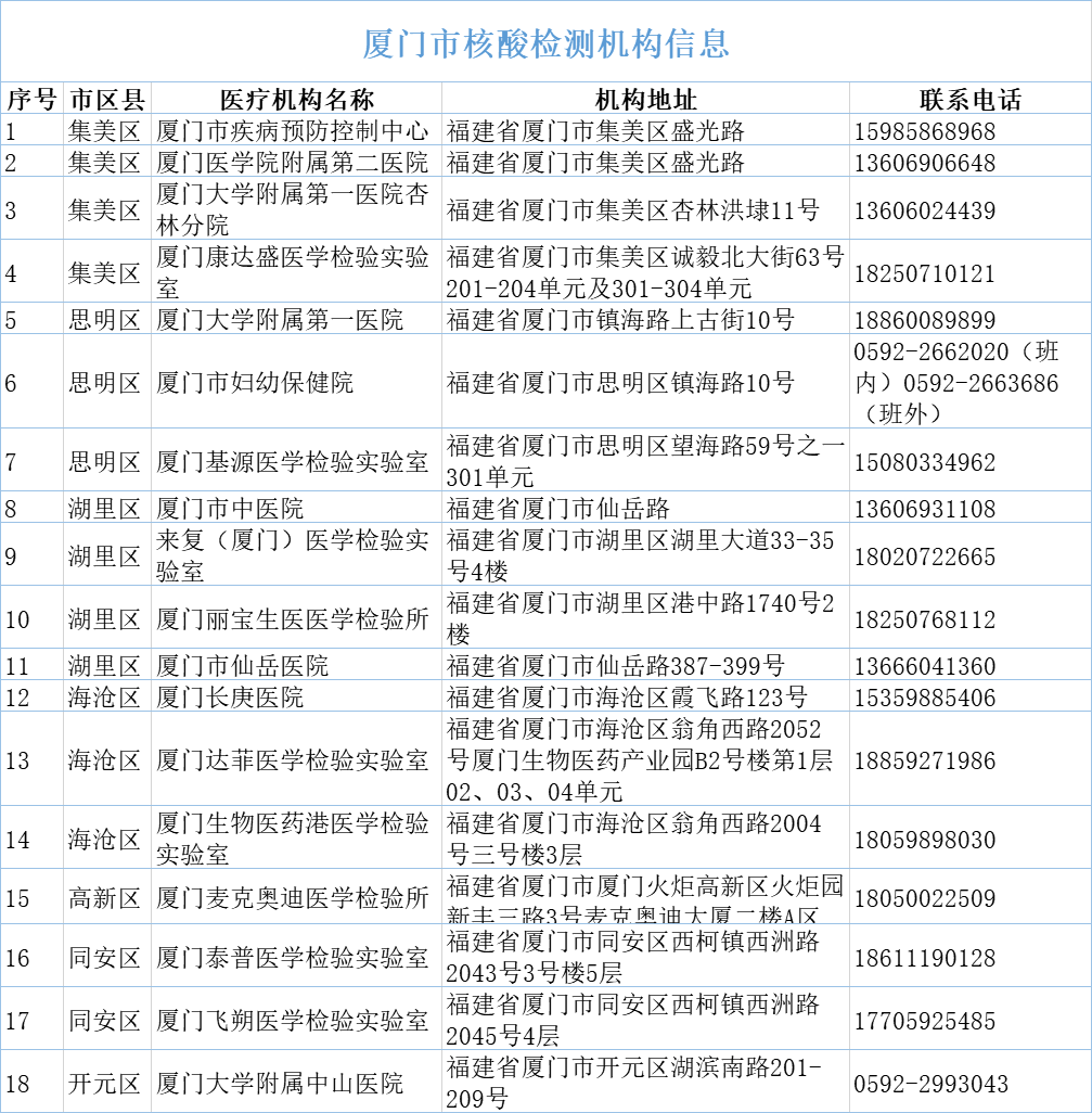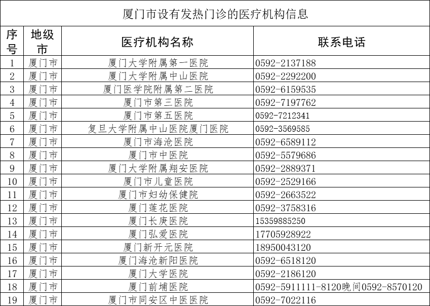 廈門設(shè)有發(fā)熱門診的醫(yī)療機構(gòu)▼