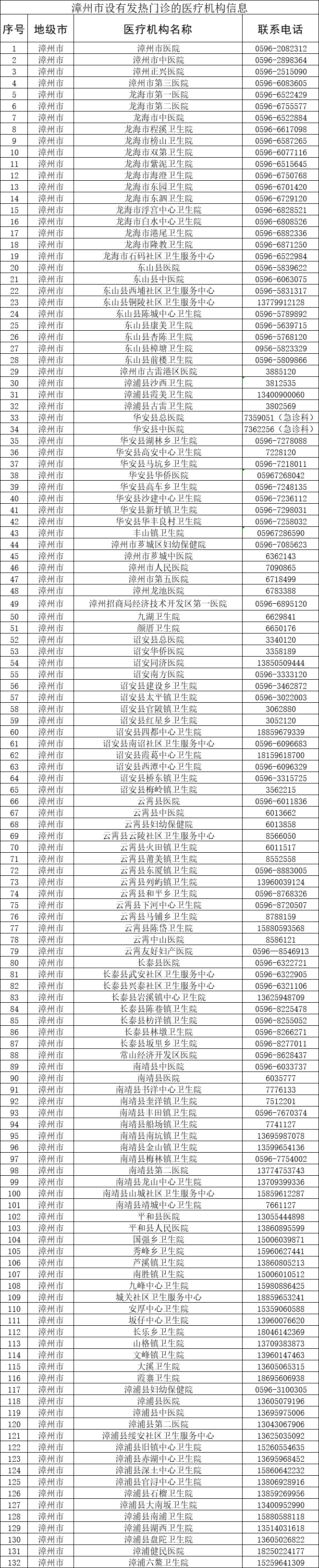 漳州設(shè)有發(fā)熱門診的醫(yī)療機(jī)構(gòu)▼