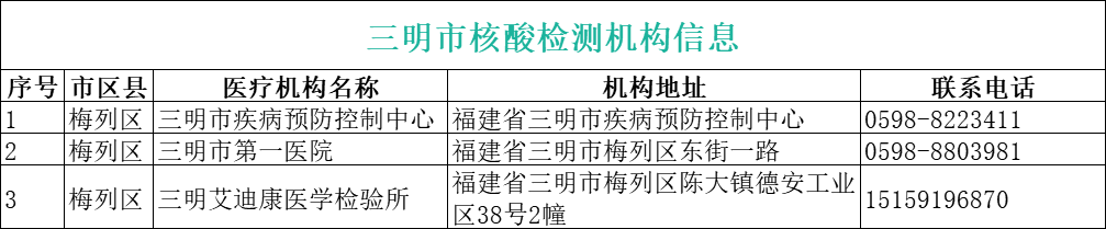 三明設有發(fā)熱門診的醫(yī)療機構▼