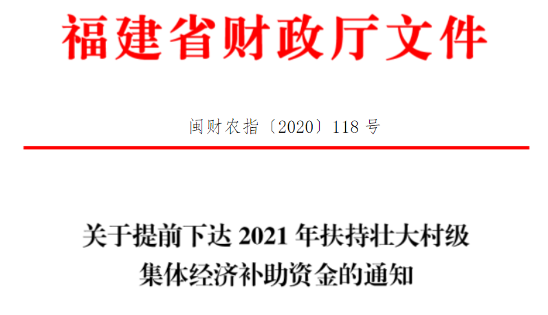 臺海網(wǎng)1月26日訊 據(jù)閩北日報報道 近日,福建省財政廳發(fā)布通知,提前下達2021年扶持壯大村級集體經(jīng)濟補助資金27150萬元。
