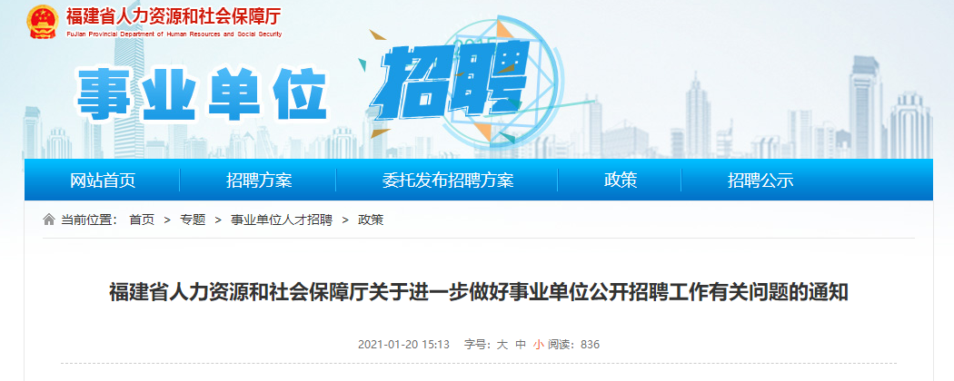 福建省人力資源和社會保障廳關(guān)于進一步做好事業(yè)單位公開招聘工作有關(guān)問題的通知