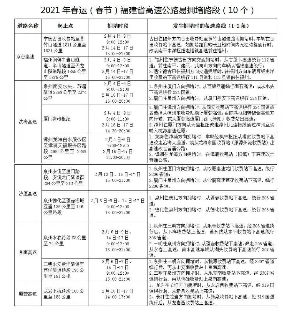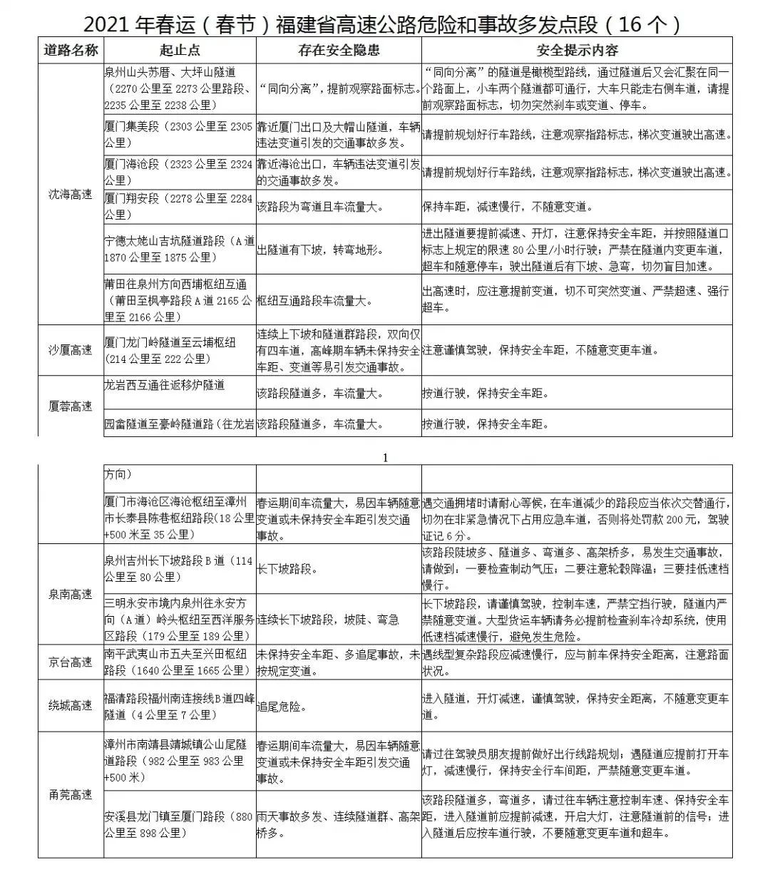 臺海網(wǎng)1月28日訊 據(jù)福建警方報道 2021年春運從今天開始至3月8日結(jié)束,為期40天。平安交通連著千萬家,疫情期間請廣大駕駛?cè)耸蘸眠@份2021年春運(春節(jié))福建省高速公路交通安全出行提示,合理選擇時段、線路,安全出行,平安過年!