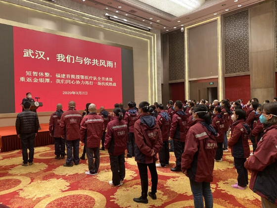 2020年,是極不尋常的一年,突來(lái)的疫情籠罩中華大地,湖北武漢等城市被按下了暫停鍵。去年今天2020年1月27日,庚子年大年初三,福建省首批支援湖北醫(yī)療隊(duì)肩上滿載期望和信念,出征武漢。2月2日,醫(yī)療隊(duì)進(jìn)駐金銀潭醫(yī)院接管4樓兩個(gè)病區(qū),直至2月24日全隊(duì)原地休整。經(jīng)過(guò)短暫休整后,全員請(qǐng)戰(zhàn),重返金銀潭醫(yī)院的崗位。3月20日上午,福建省首批支援湖北醫(yī)療隊(duì)正式將金銀潭醫(yī)院綜合樓4樓病房移交給浙江省人民醫(yī)院醫(yī)療隊(duì),圓滿完成了在武漢的使命。3月24日,福建首批支援湖北醫(yī)療隊(duì)抵達(dá)福州長(zhǎng)樂機(jī)場(chǎng),支援武漢58天的隊(duì)員們受到了熱情歡迎。在金銀潭醫(yī)院工作期間,醫(yī)療隊(duì)取得了醫(yī)護(hù)零感染、病人零死亡的成績(jī)。