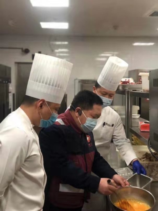 援鄂期間,寧永鑫為隊(duì)員們親自下廚(受訪者供圖)