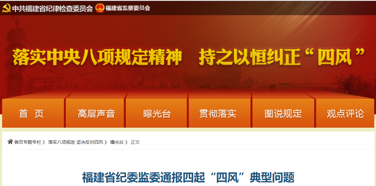 春節(jié)將至,為持之以恒落實(shí)中央八項(xiàng)規(guī)定精神,持續(xù)釋放對(duì)“四風(fēng)”問(wèn)題緊盯不放、寸步不讓、一抓到底的強(qiáng)烈信號(hào),教育警示廣大黨員干部切實(shí)做到知敬畏、存戒懼、守底線,日前,福建省紀(jì)委監(jiān)委通報(bào)近期查處的4起“四風(fēng)”典型問(wèn)題。