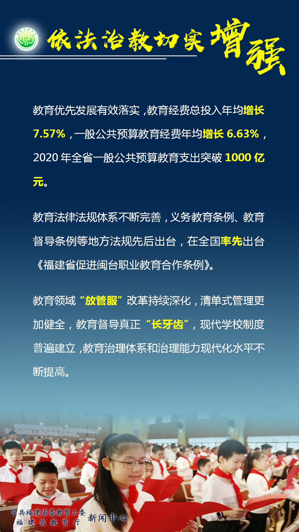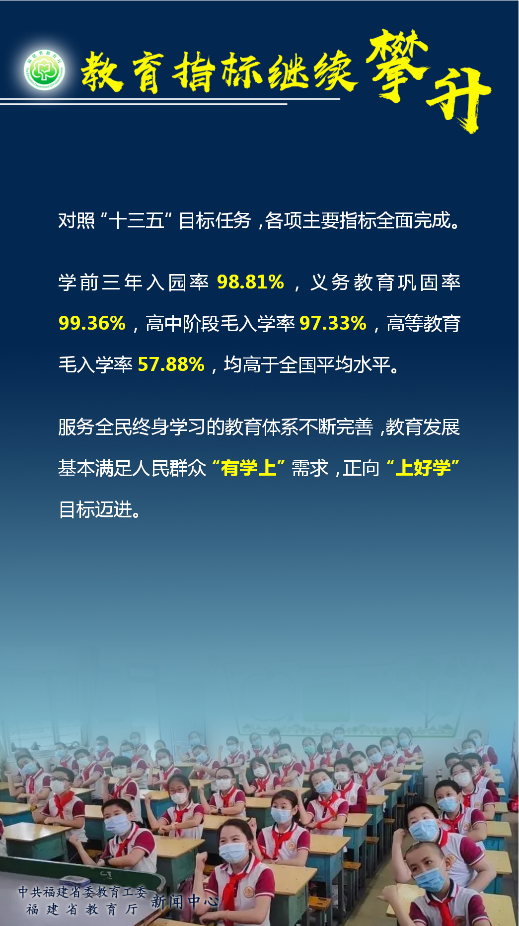 臺海網(wǎng)2月27日訊 據(jù)“福建教育微言”微信發(fā)布 “十三五”時期,全省教育系統(tǒng)堅持以習(xí)近平新時代中國特色社會主義思想為指導(dǎo),深入貫徹落實(shí)黨的十九大和十九屆二中、三中、四中、五中全會精神,牢記習(xí)近平總書記“福建沒有理由不把教育辦好”的重要要求,全面貫徹落實(shí)黨的教育方針,堅持立德樹人,持續(xù)深化教育改革,促進(jìn)教育公平,提升教育質(zhì)量,加快推進(jìn)教育現(xiàn)代化、建設(shè)教育強(qiáng)省、辦好人民滿意的教育。