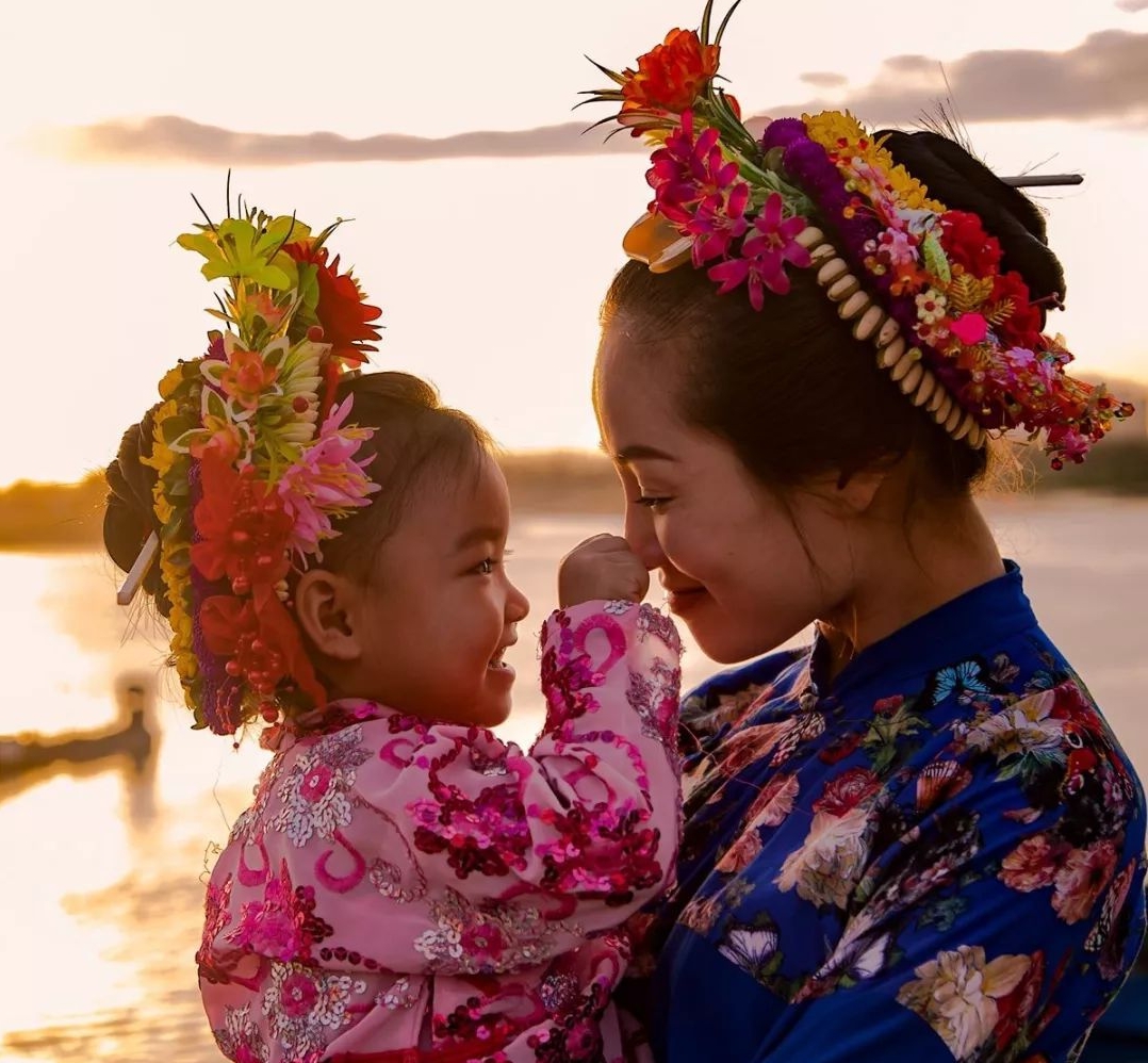 無(wú)論春夏秋冬、年老年少,她們每日不厭其煩地將頭發(fā)細(xì)心盤起,用一輪一輪的鮮花簪在頭上,五彩繽紛,香氣四溢。好看得兩只眼睛都不夠用!