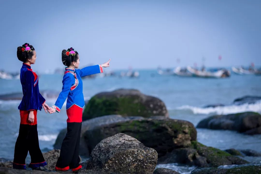 “帆船頭,大海衫,紅黑褲子保平安”。這種特色裝扮,和海上女神——媽祖信仰有關(guān)。藍(lán)色的上衣代表大海,褲子的紅色和黑色代表吉祥和思念。