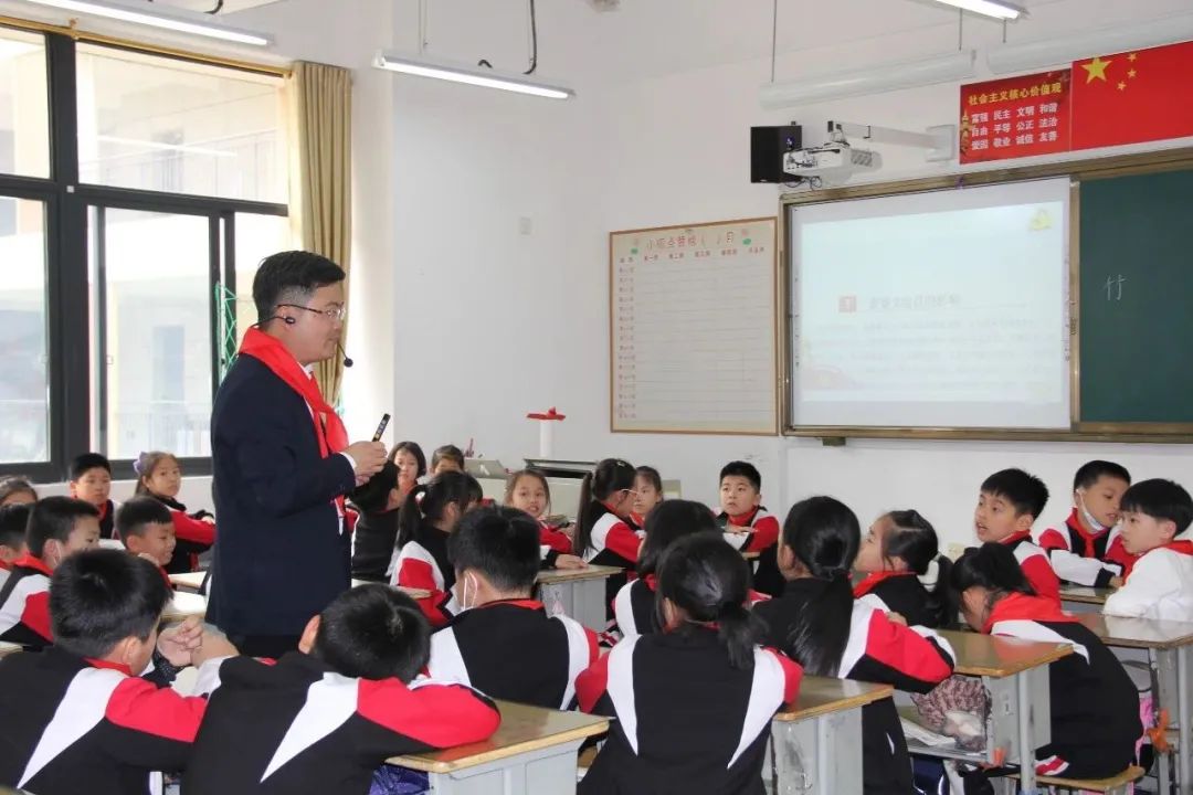 三年(2)班輔導(dǎo)員紀浩鵬,北京大學(xué)博士,他給隊員們講述了毛澤東在童年和青年時期是如何讀書、實踐、立志的故事,在少先隊員的心里撒下紅色的種子。