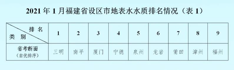 1月,各設(shè)區(qū)市地表水水質(zhì)排名如下圖: