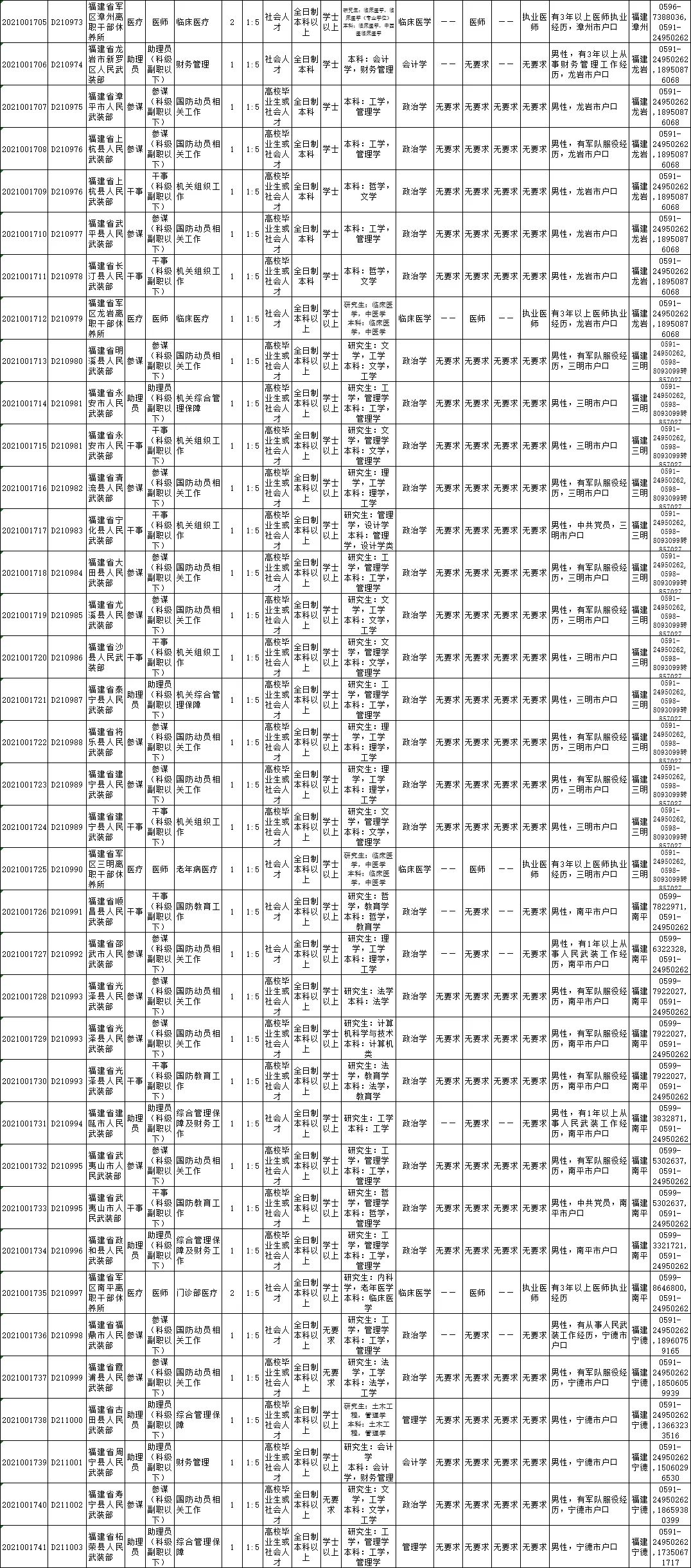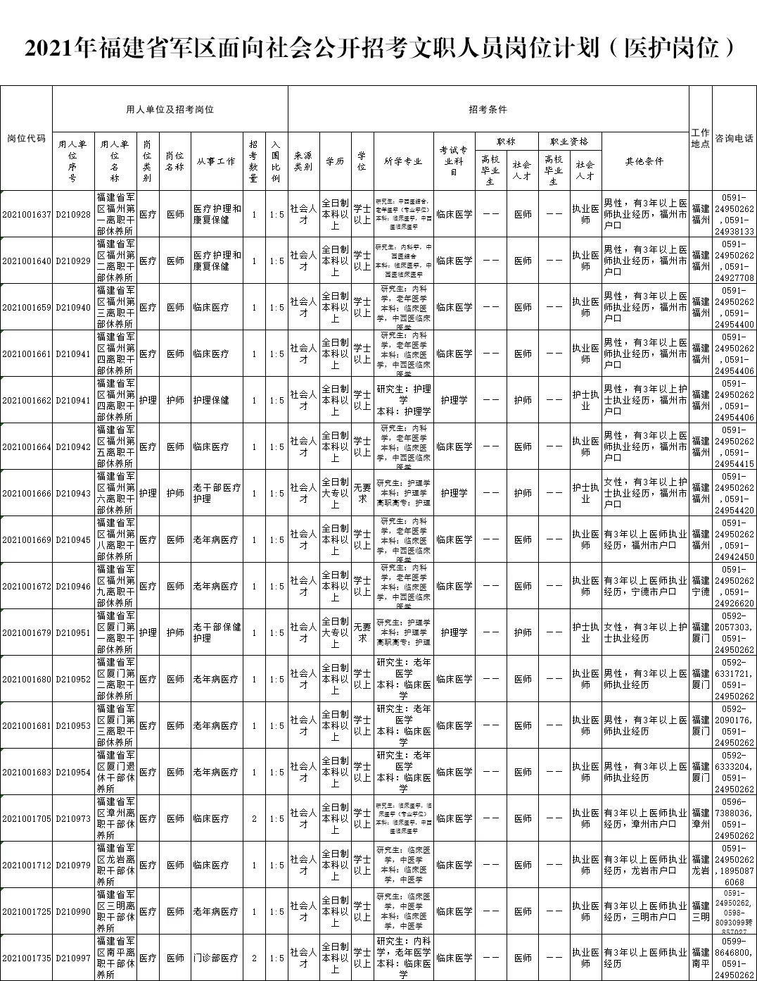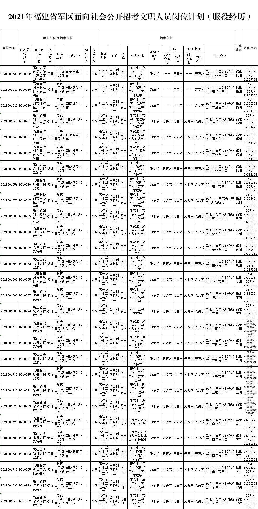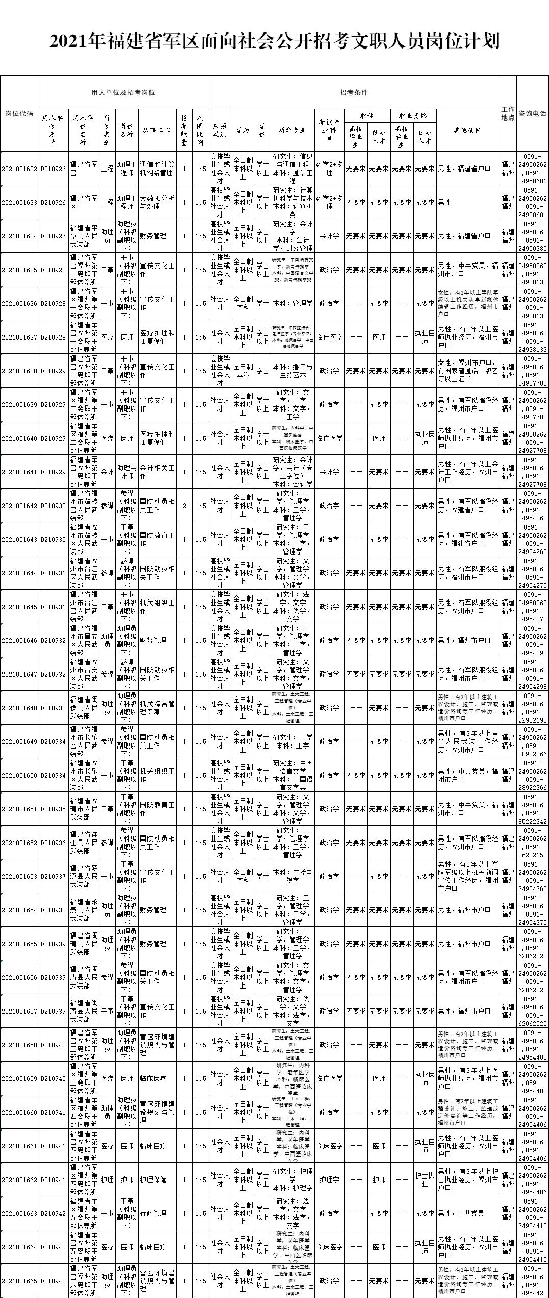 2021年福建省軍區(qū)面向社會公開招考文職人員共推出110個招聘崗位,招聘113人,期待你的加入!