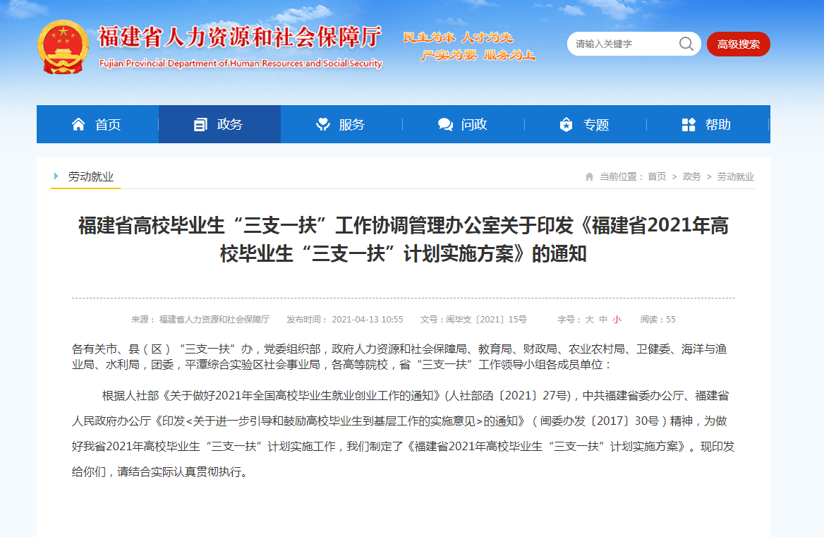福建省2021年高校畢業(yè)生“三支一扶”計劃實施方案