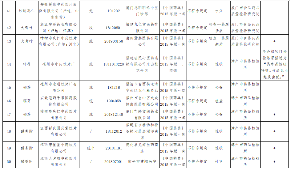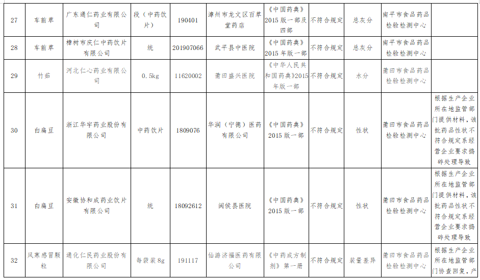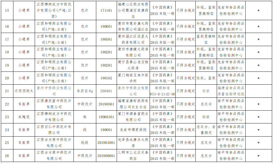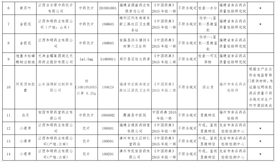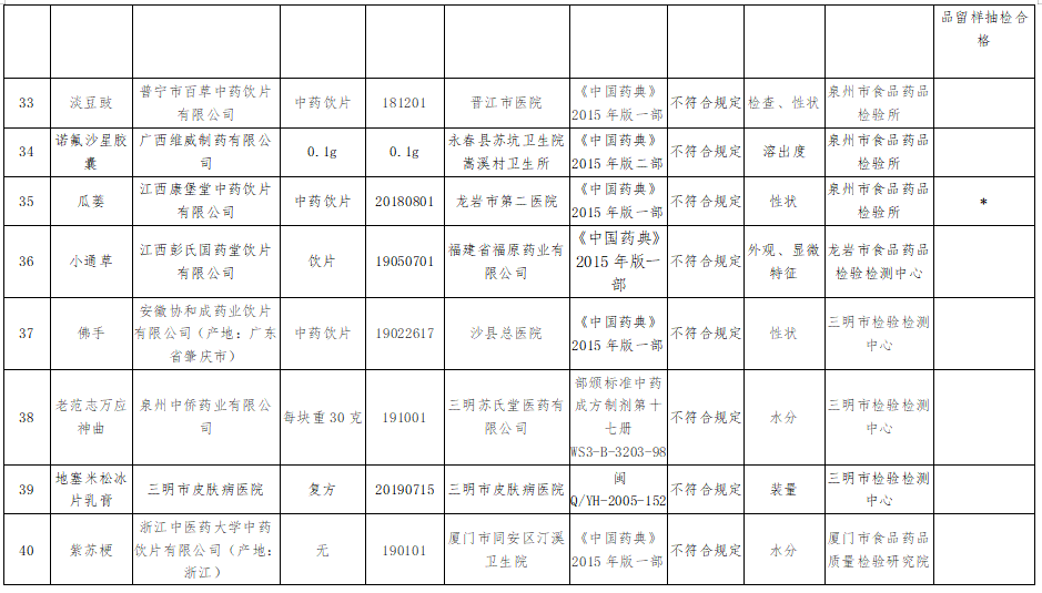 抽檢不符合標(biāo)準(zhǔn)規(guī)定的藥品名單如下:
