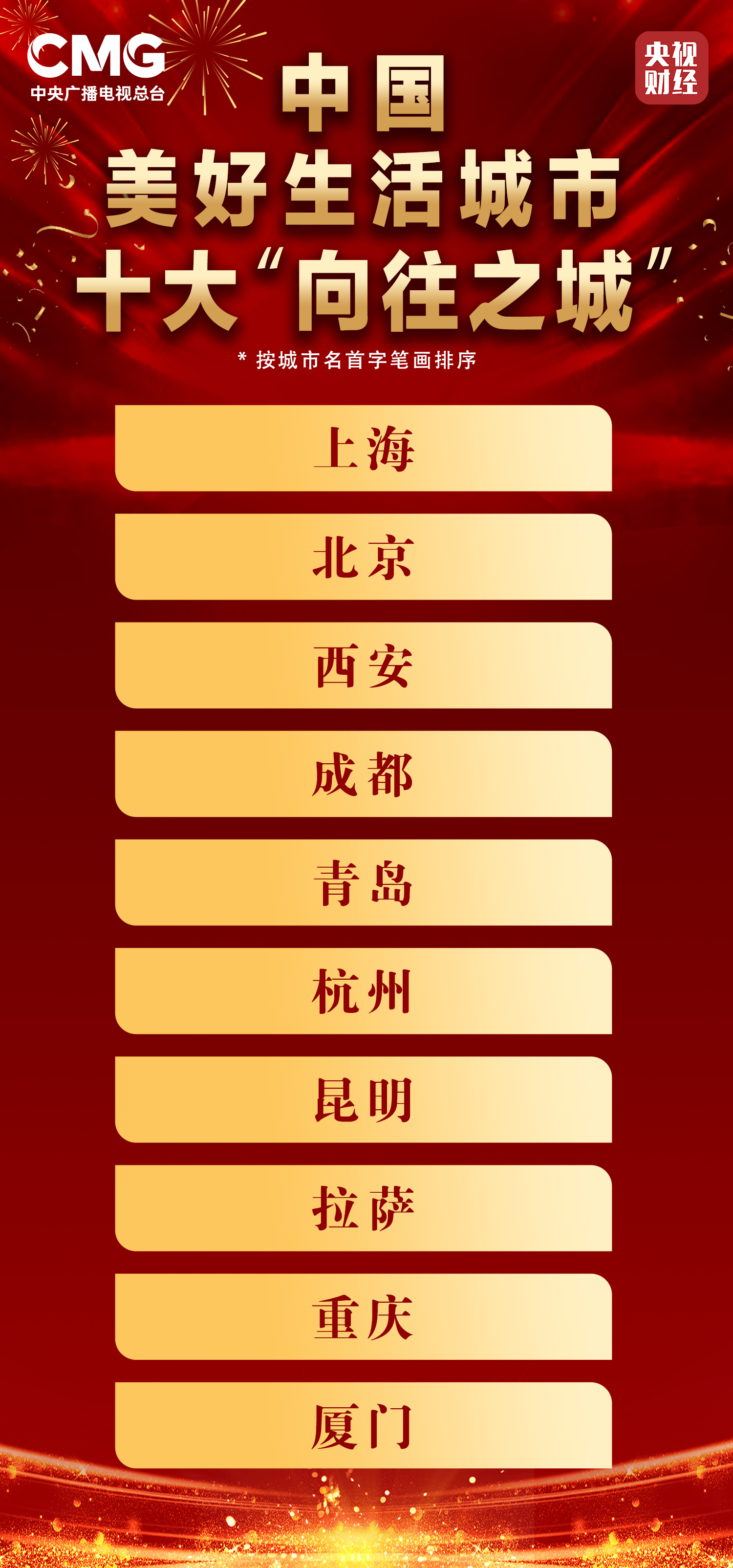 十大“向往之城”:上海、北京、西安、成都、青島、杭州、昆明、拉薩、重慶、廈門(排名規(guī)則同上)