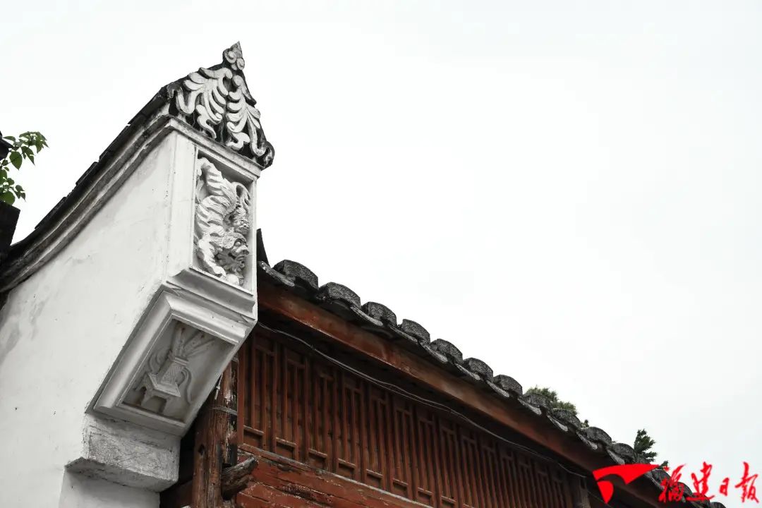 福州古厝盛行在馬鞍墻飛翹的翼角處作泥塑,上刻花紋,每一幅都刻畫精致,栩栩如生。