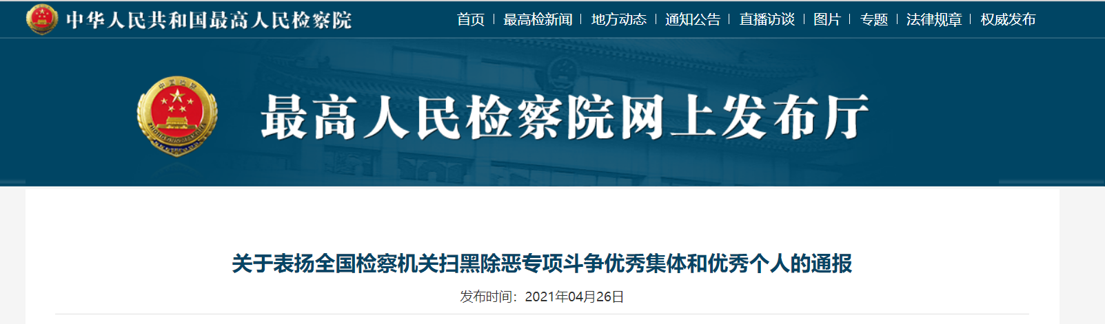 臺海網(wǎng)4月27日訊 據(jù)福建日報·新福建APP報道 近日,最高人民檢察院印發(fā)關(guān)于表揚全國檢察機(jī)關(guān)掃黑除惡專項斗爭優(yōu)秀集體和優(yōu)秀個人的通報。高檢院黨組決定,對掃黑除惡專項斗爭開展以來成績突出的北京市人民檢察院第二分院第一檢察部等90個優(yōu)秀集體、張文秀等148名優(yōu)秀個人予以通報表揚。