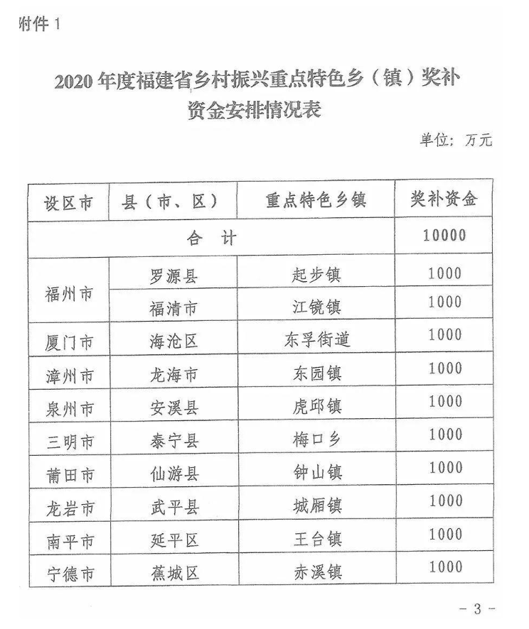 1.2020年度福建省鄉(xiāng)村振興重點特色鄉(xiāng)(鎮(zhèn))獎補資金安排情況表