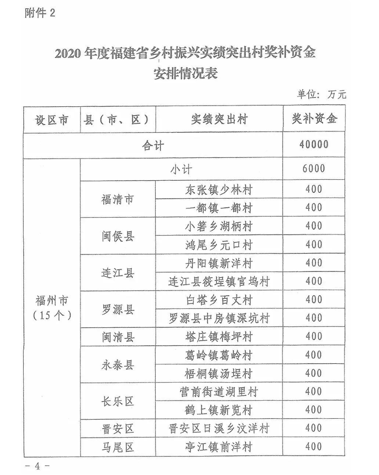 2.2020年度福建省鄉(xiāng)村振興實績突出村獎補資金安排情況表