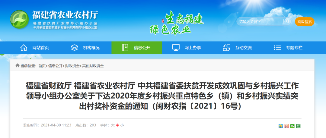 福建省財政廳、福建省農(nóng)業(yè)農(nóng)村廳、