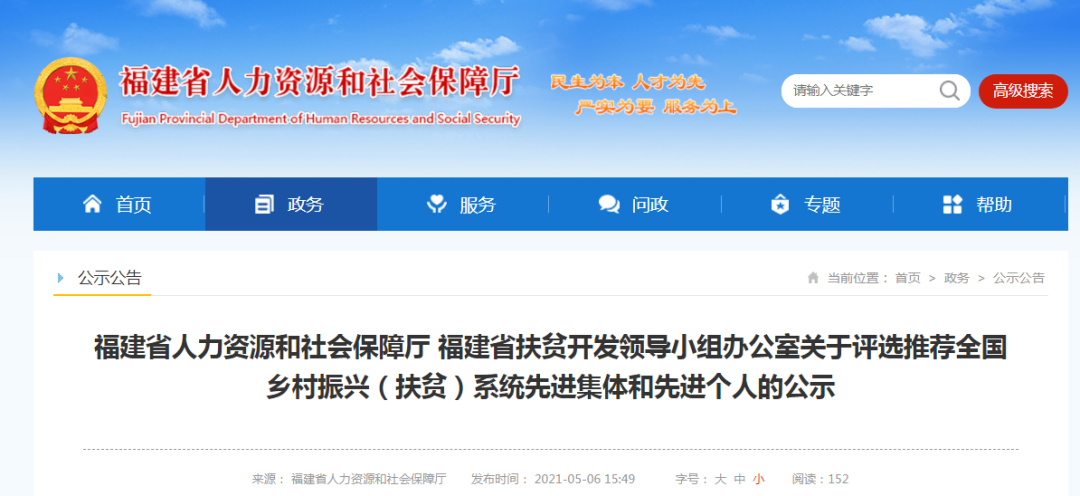 根據(jù)《人力資源社會保障部 國家鄉(xiāng)村振興局關(guān)于評選全國鄉(xiāng)村振興(扶貧)系統(tǒng)先進集體和先進個人的通知》(人社部函〔2021〕35號)精神,我省組織開展了評選推薦工作。經(jīng)全國鄉(xiāng)村振興(扶貧)系統(tǒng)先進集體和先進個人評選表彰領(lǐng)導(dǎo)小組研究, 擬推薦政和縣扶貧開發(fā)領(lǐng)導(dǎo)小組辦公室、周寧縣扶貧開發(fā)領(lǐng)導(dǎo)小組辦公室、建寧縣扶貧開發(fā)領(lǐng)導(dǎo)小組辦公室等3個單位為全國鄉(xiāng)村振興(扶貧)系統(tǒng)先進集體,呂清貴、林浩磊、楊先健等3名同志為全國鄉(xiāng)村振興(扶貧)系統(tǒng)先進個人?,F(xiàn)予以公示。公示時間2021年5月6日至2021年5月11日(5個工作日)。公示期間,若有異議,請電話或書面反映情況。