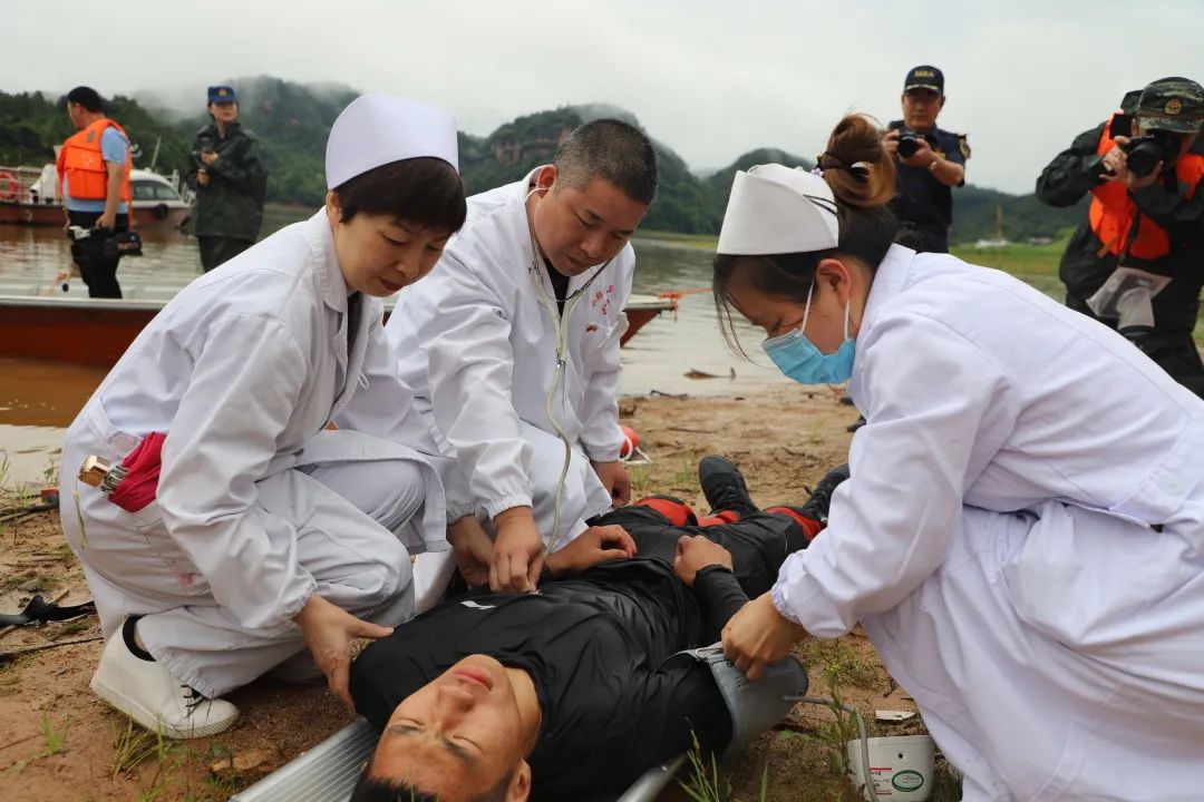 “各就各位,預備,開始......”號令即出,動若風發(fā),緊隨一聲急促的口令,消防指戰(zhàn)員快速將無人機升空偵查受困人員情況,而后采用拋繩器等救援設備將圍困人員有序從湍急的河流中解救,醫(yī)療小組緊隨其后,迅速對落水群眾進行身體檢查和搬運固定。