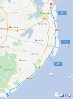 廈門(mén)環(huán)島路沿海而建,從廈門(mén)大學(xué)到會(huì)展中心的一段海岸,被稱(chēng)為“黃金海岸線”,又名五色路:藍(lán)色的大海、金色的沙灘、綠色的草地、紅色的跑道、灰色的公路。
