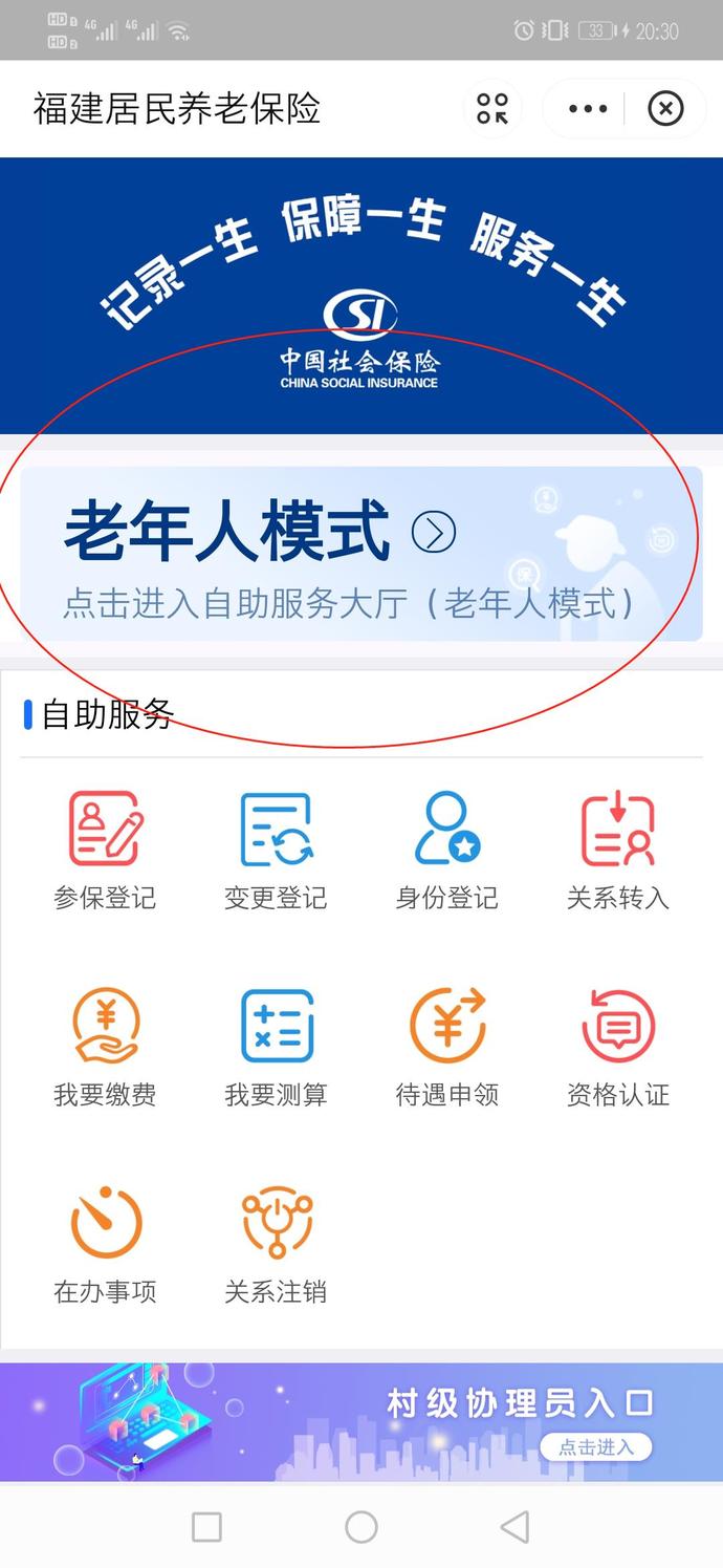 據(jù)悉,老年人通過微信、支付寶搜索“福建居民養(yǎng)老保險”小程序,或進(jìn)入“福建人社”微信公眾號,點(diǎn)擊“微互動”—“服務(wù)大廳”—“居民養(yǎng)老保險服務(wù)”,長按識別二維碼進(jìn)入“福建居民養(yǎng)老保險”小程序,在首頁顯目位置就可以看到大號字體的“老年人模式”模塊,點(diǎn)擊就可以進(jìn)入老年人專屬自助服務(wù)大廳。